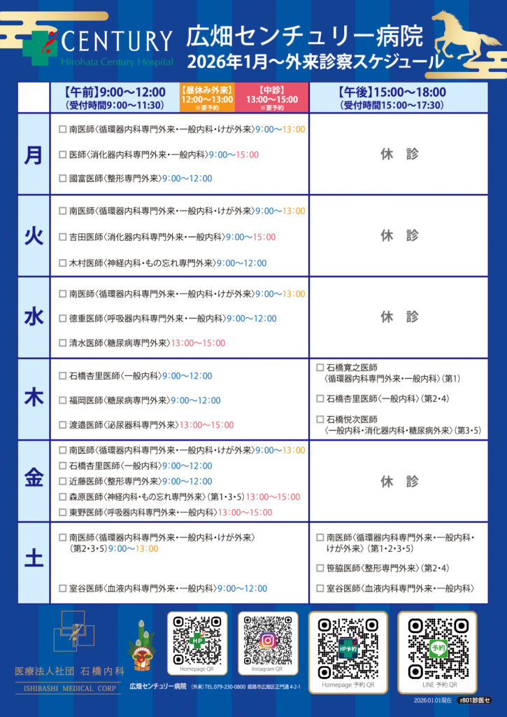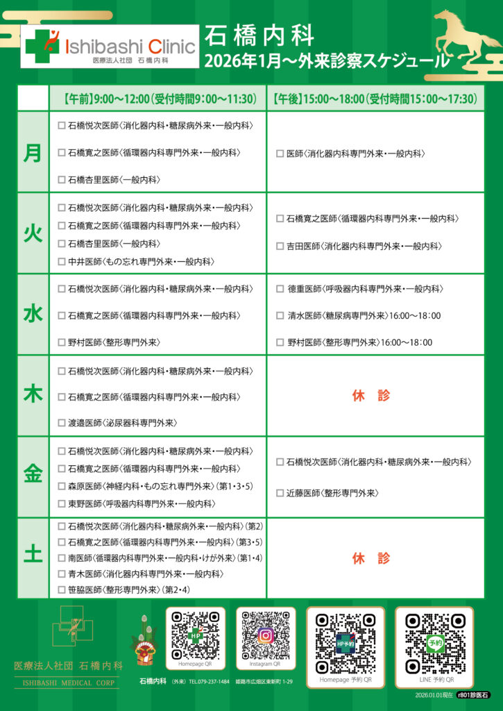 1月診察スケジュールのご案内
